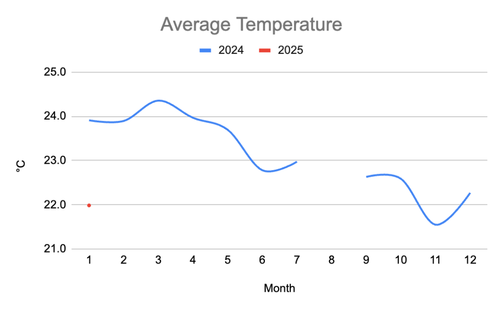 Let’s talk about temperature. You may recall that from the beginning, we wanted to start this project in a place where we could live comfortably. In the tropics, that means altitude. And indeed, the average temperature at Babylon Gardens is 23ºC at 700 meters above sea level, it’s perfect!